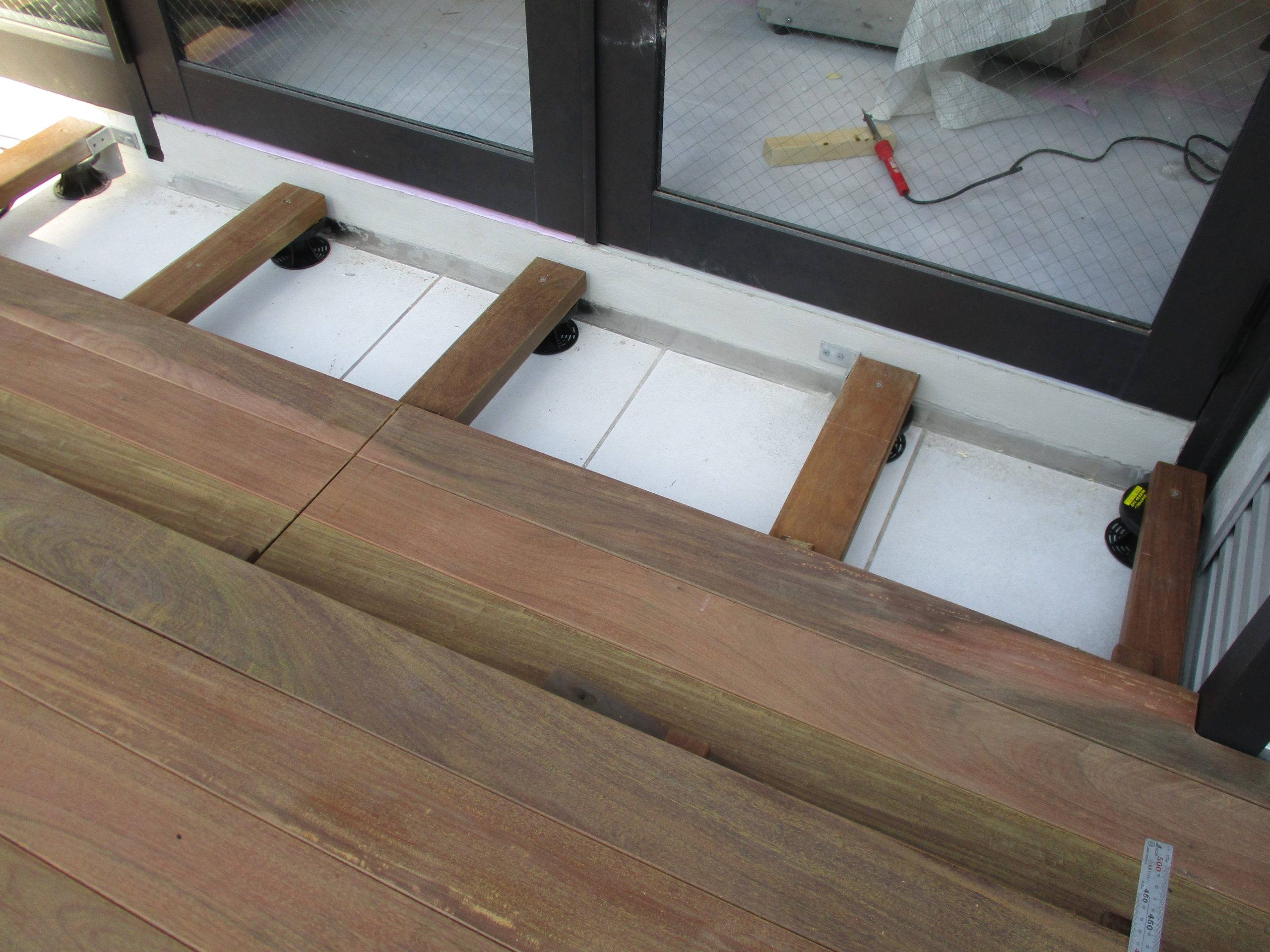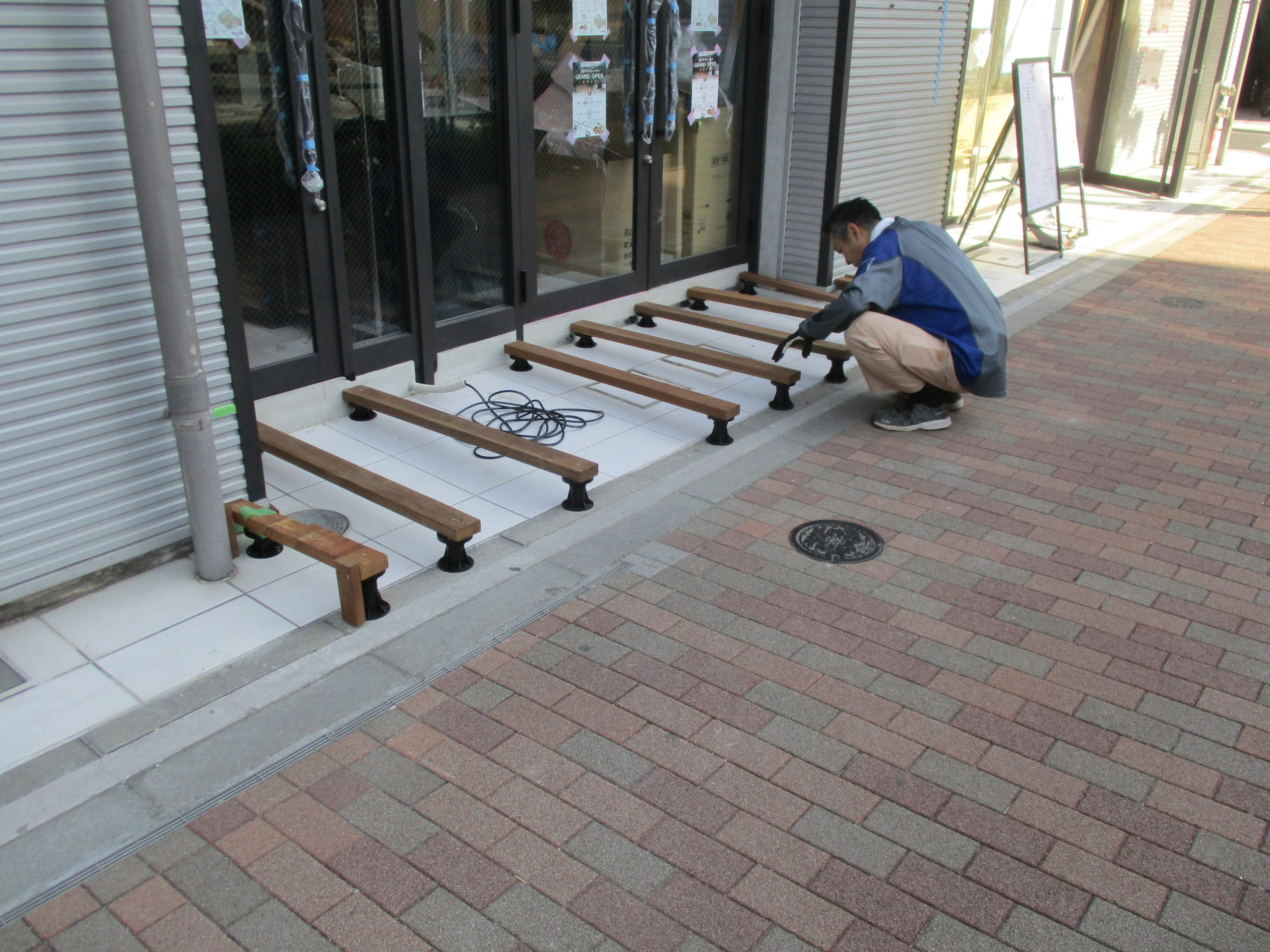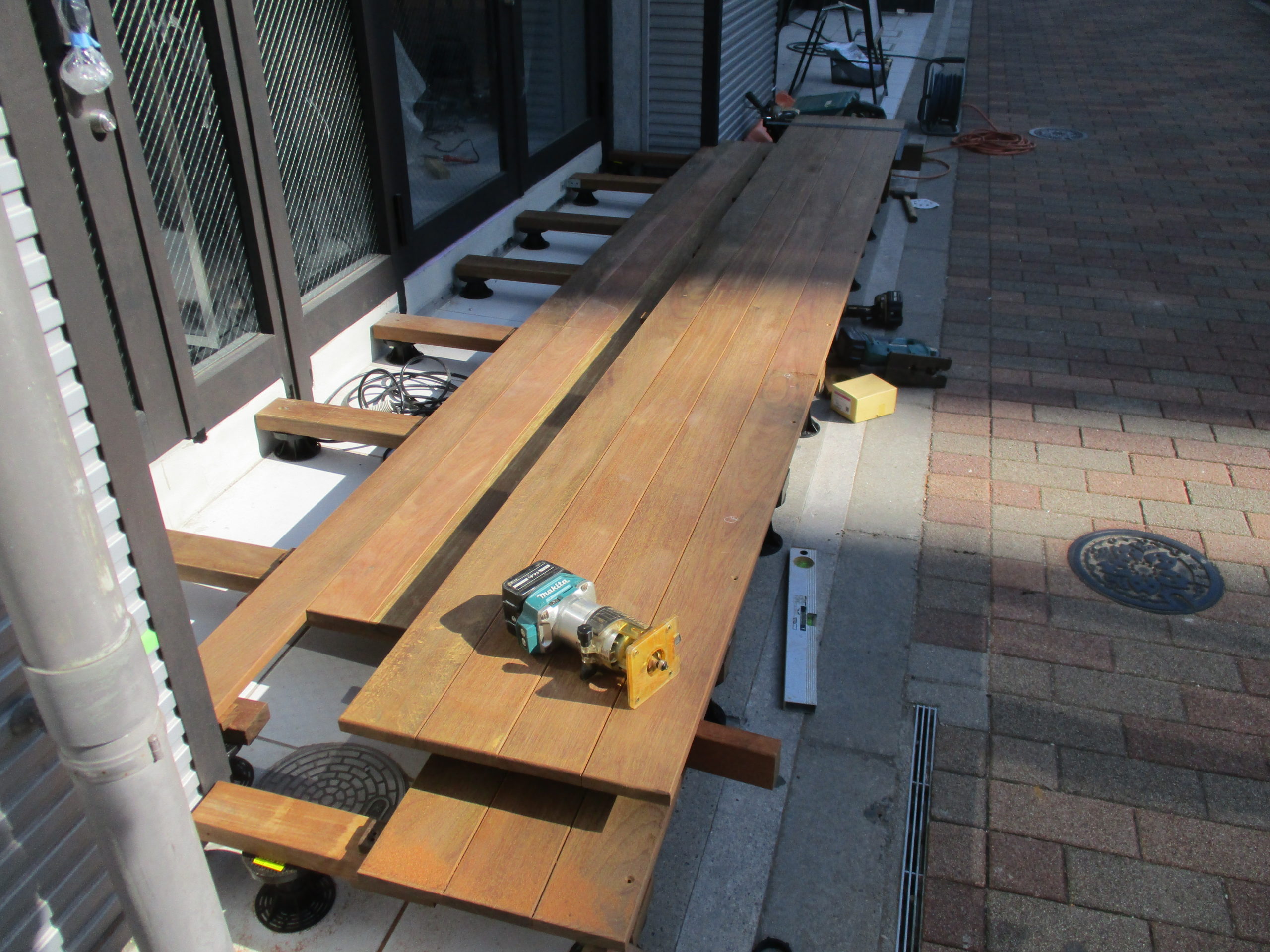 根太を並べてレベルとり 床板張りです。
