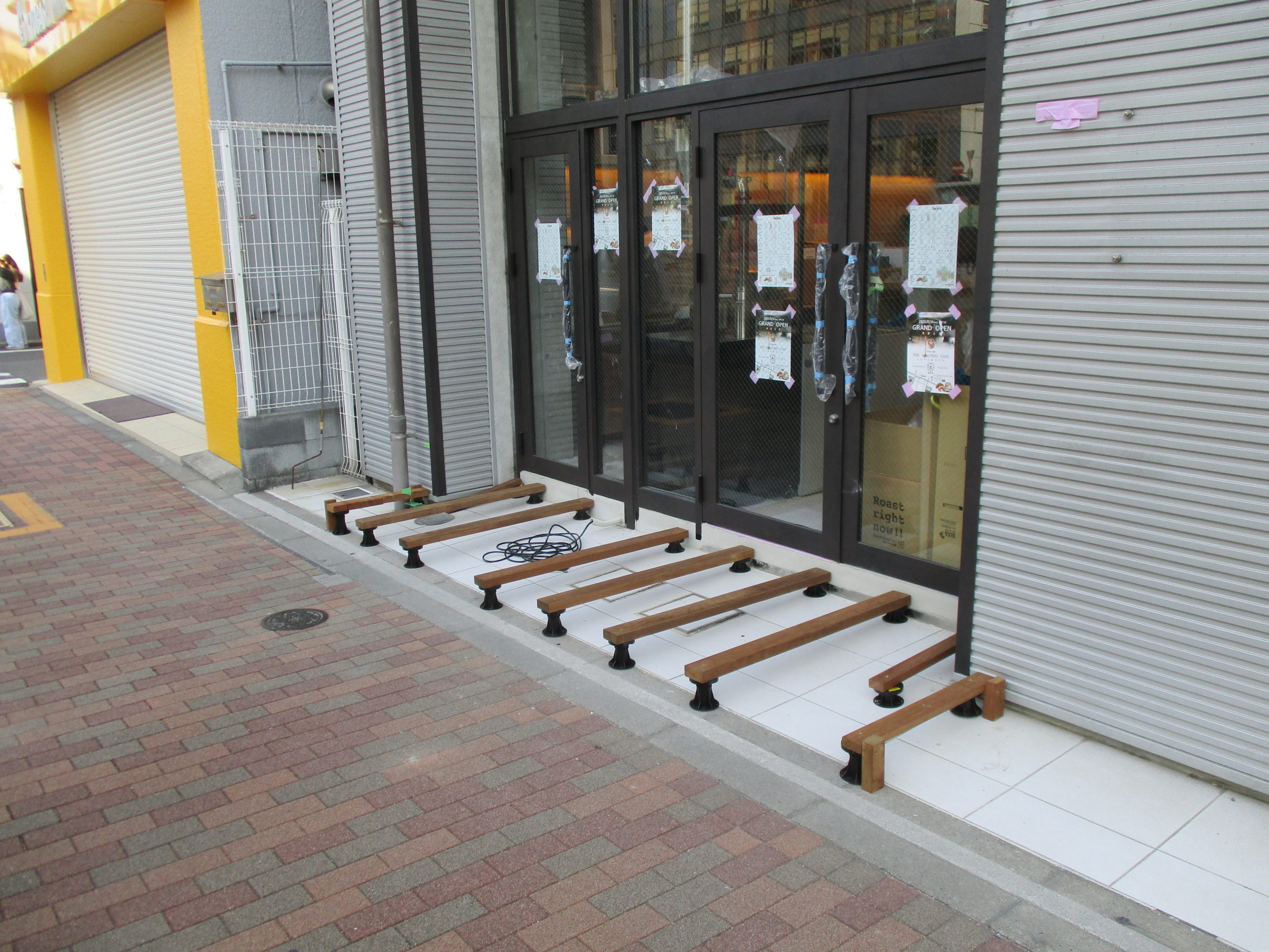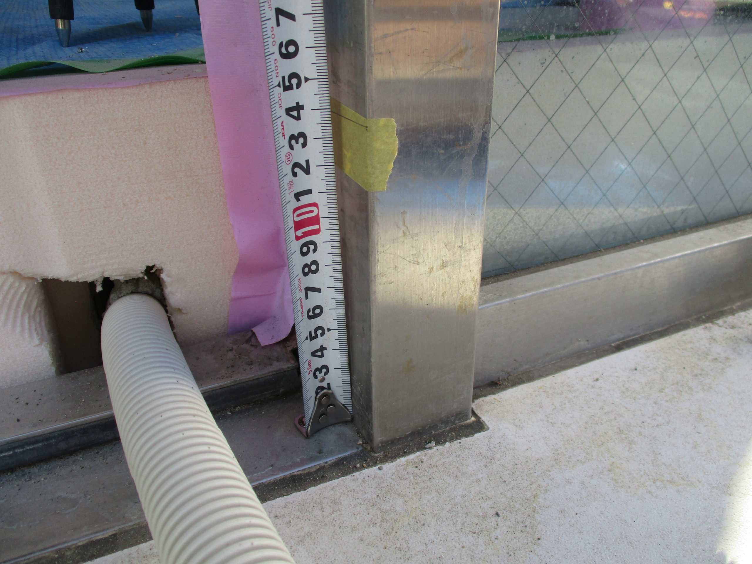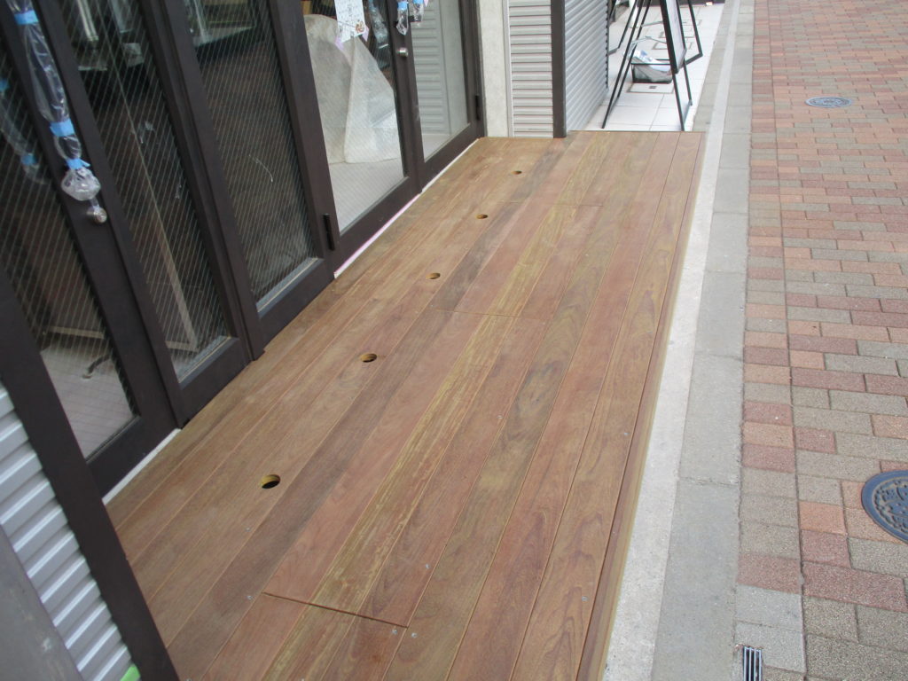 根太を並べてレベルとり 床板張りです。